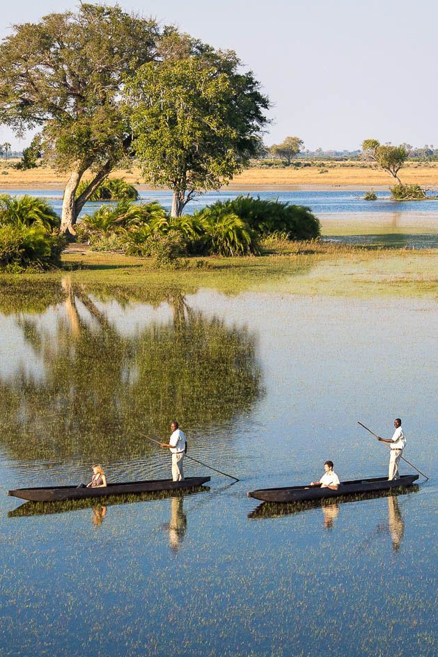 Una delle esperienze più iconiche del Delta dell’Okavango è la navigazione in mokoro, la tradizionale canoa scavata nel legno. Scivolando silenziosamente tra i canneti si entra in un mondo sospeso, dove il tempo sembra rallentare.